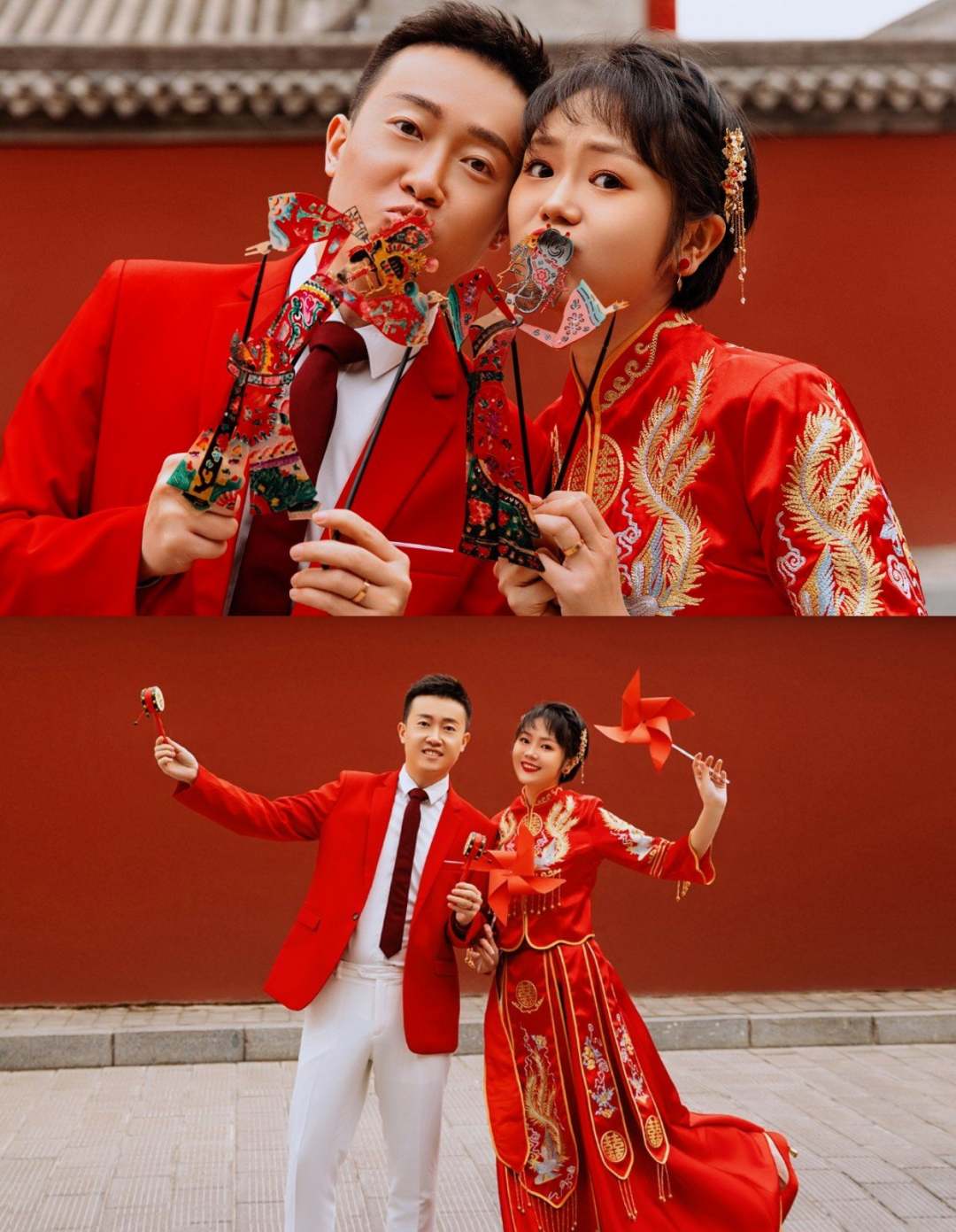 俏皮中带点甜,红底婚纱照太好看了吧